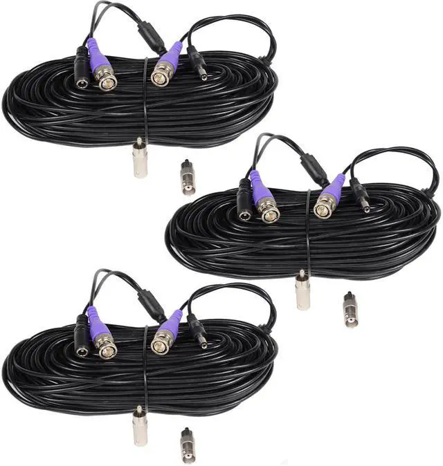 VideoSecu 3 HD Security Camera 50ft Video Power Cable Pre-made All-in-One Wire for AHD, HD-CVI, HD-TVI, 960P, 720P, 700TVL, 1000TVL, 960H Security Camera with Free BNC RCA Connectors BVE