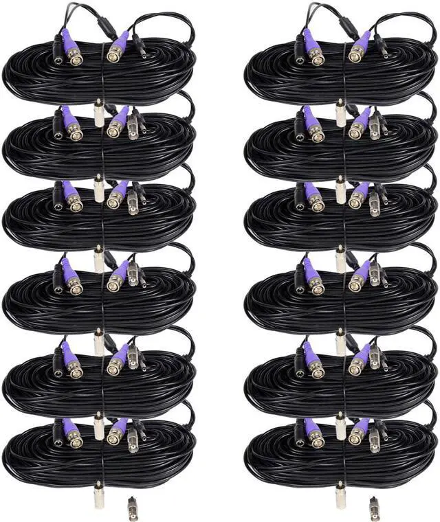 VideoSecu 12 Pack 100ft Video Power Cable for AHD HD-CVI HD-TVI HD Analog Security Camera Surveillance with Free BNC RCA Connectors CKW