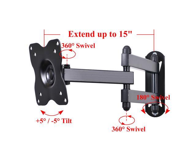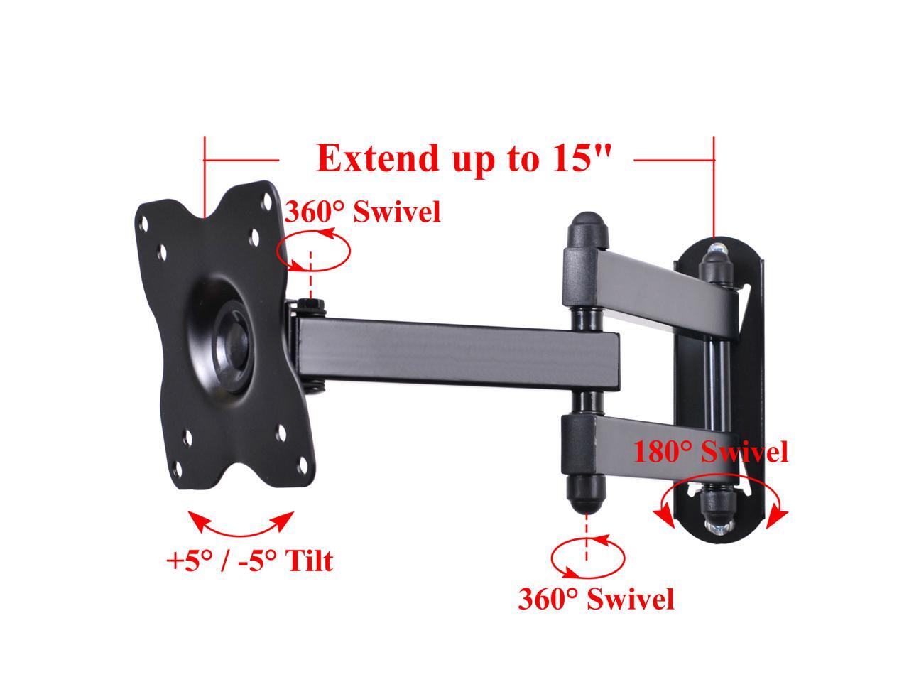 - Tilt +/-5°, Swivel 180°, Extend 2.4~15"