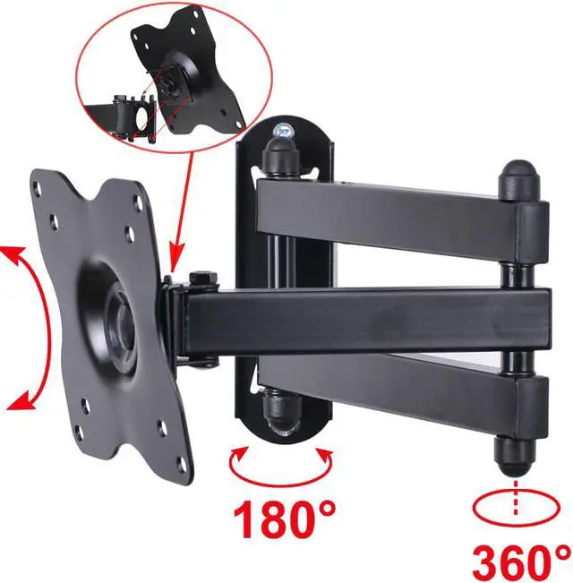 Video Secu articulating wall mount ML12B for most 15"-24" LED LCD TV Monitors, some LED up to 29" with VESA mounting hole patterns 75x75/100x100mm, makes it easy to view your TV or Monitor from different angles. Durable steel construction with black powder coated finish supports loading capacity up to 44lbs. This swing arm wall mount gives you 15" long extension from the wall with maximum flexibility. You can also fold it close to your wall for a low-profile appearance. Post-installation level adjustment allows the TV to perfectly level. Adjustable tilt +5°/-5°, swivel 180° provide smooth adjustment for all directions.