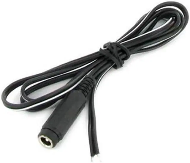 The DC power pigtail can be used for connecting Siamese CCTV cable to power supply or connecting your security cameras to your power distribution system. It features a molded male or female coaxial power plug on one end to two stripped and tinned wires on the other. Black and white wire jackets indicate polarity. It provides a simple solution for power connectivity. The inner diameter is 2.1mm center positive.