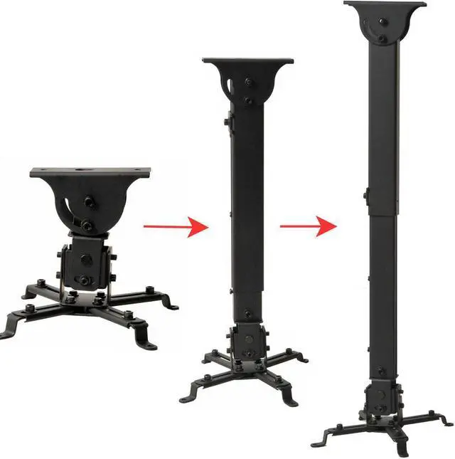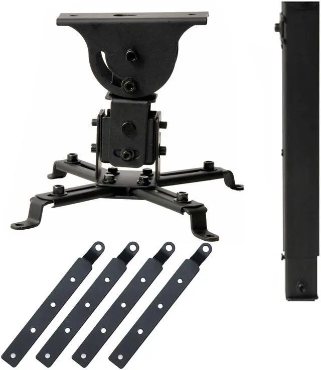 The projector ceiling mount is attractive, strong and light weight. Durable Black finish comes with the latest design in safety, flexibility and value for many of today's most popular LCD projectors. The projector ceiling mount PJ2BE55 features a flexible mounting system that can be used with today's most popular projector models and that has the versatility to be attached to nearly any ceilings. It is compatible with virtually any projector that has threaded mounting holes. Equipped with four double-jointed support arms, the mount allows flexible positioning to reach almost any mounting point of the projector.