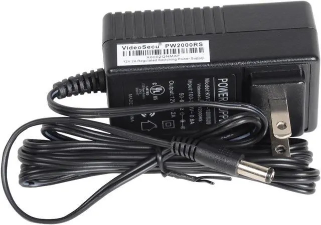 2000mA Regulated Power Supply, Great for high power IR cameras. Switching power supply. Non polarized 2 prong input connector and 70 inch output cord with 5.5mm OD / 2.1mm ID coaxial plug connector Center +. UL/Canada/USA listed.