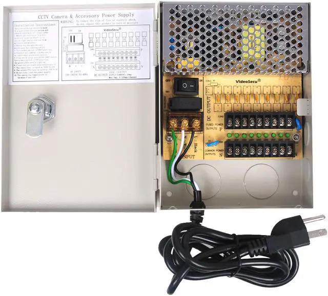 The high quality 9 channels power box is a professional grade, top quality power supply. It is new, fully regulated and improved design for CCTV cameras. Power supply panels for up to 9 cameras offer a more professional alternative to individual power adapters. The most special feature is that each outlet is individually fused and each panel is surge protected. So it becomes much safer than other power supply. Free 6 ft power cord and key lock are included in the package.