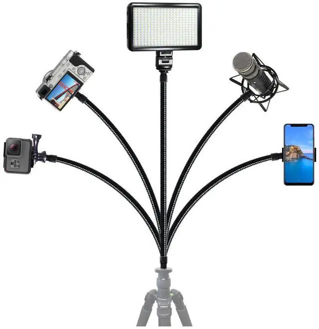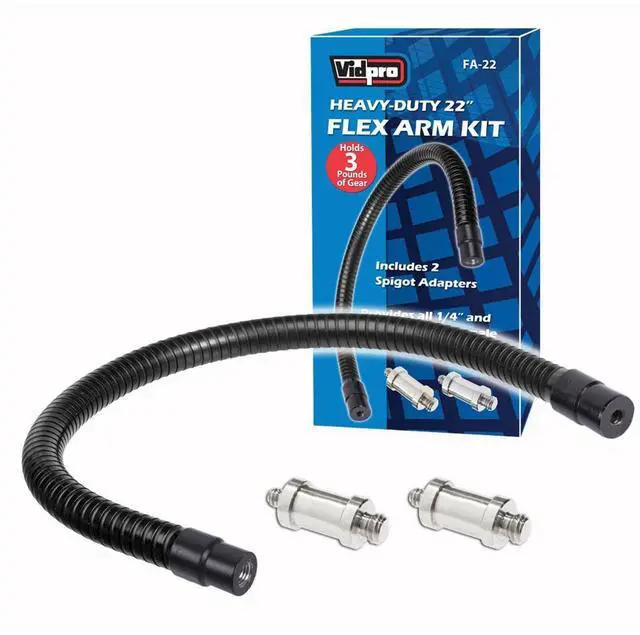 The flexible and sturdy gooseneck can hold your gear steadily in position as you work. It provides an excellent mounting platform for a variety of photographic equipment. Includes 2 spigot adapters which provide 1/4" and 3/8" screw and socket mounting configurations.