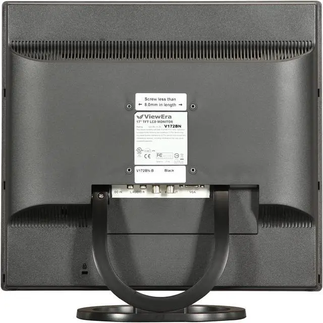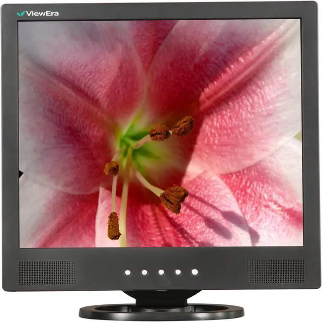 The ViewEra V171BN-B 17" flat panel monitor brings you sharp, bright LCD performance at a thoroughly painless price! With RGB analog and composite BNC inputs, 3D comb filtering, and a 500:1 contrast ratio, you'll enjoy crisp, clear text and bold life-like color graphics. The BNC looping output makes this an ideal choice for security camera or other closed circuit applications, and the 8ms response time gives you smooth motion viewing.