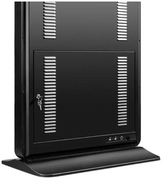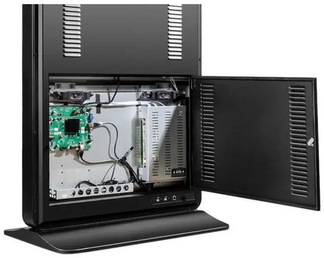 A convenient media player cradle can accommodate a PC or an additional mounted media player, while a lockable door keeps things secure and out of sight. The ePoster stand also features an integrated power supply, eliminating the need to find alternative outlets for add-on devices.