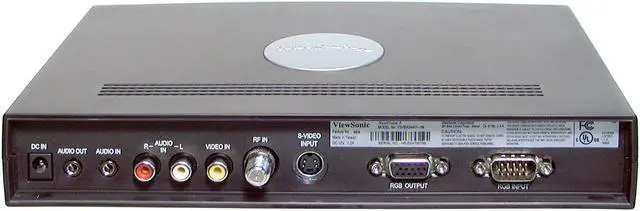 | Ports In | RF, component video (YPBPr), S-video, composite (RCA), RGB pass-through, 3.5mm mini stereo audio in, and RCA (left/right) audio in |