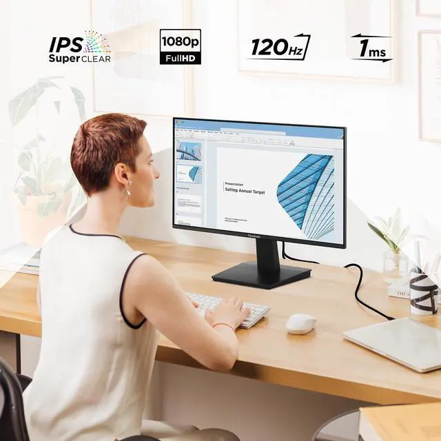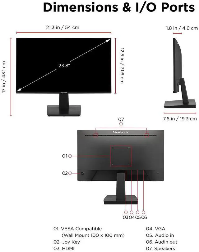 With flexible connectivity, wide-angle viewing, and amazing screen performance, the ViewSonic® VA2448-MH delivers solid multimedia features and a sleek design at a great value. Featuring frameless IPS panel technology, the VA2448-MH delivers stunning brightness and contrast. A minimalistic design, edge-to-edge screen, and frameless bezel make this an ideal monitor for nearly seamless multi-screen setups. Whether for working at the office, or enjoying entertainment at home, the VA2448-MH features an HDMI port and an included HDMI cable for flexible connectivity to PCs, laptops and gaming consoles. A three-year limited warranty, along with one of the industrys best pixel performance policies, makes the VA2448-MH a great overall value choice.