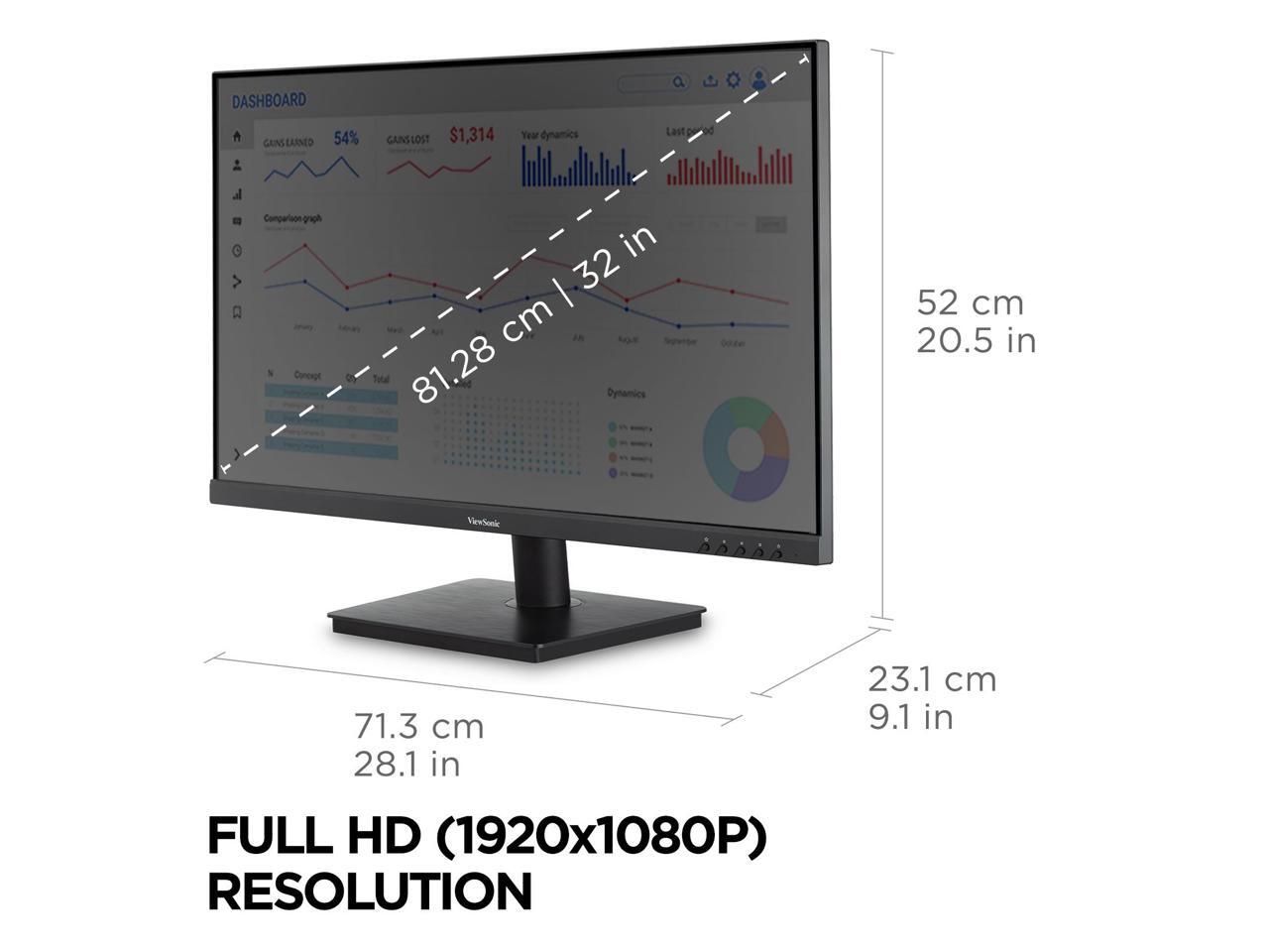 ViewSonic VA3209M 32 Inch IPS Full HD 1080p Monitor with Frameless Design, 75 Hz, Dual Speakers, HDMI, and VGA Inputs for Home and Office