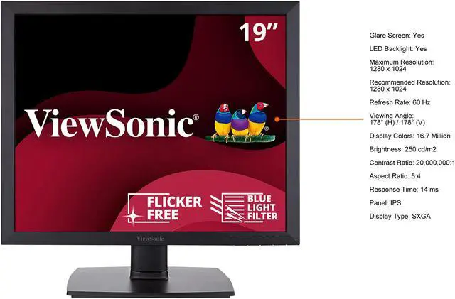 The ViewSonic VA951S is a viewer-friendly, high-performance 19'' LED display with 5:4 aspect ratio that is perfect for legacy or customised applications in corporate, government, educational and other vertical markets. Featuring crystal-clear 1280 x 1024 resolution, SuperClear® technology and 20M:1 DCR, the display presents sharp, true and consistent colour performance at 178?/178?-wide viewing angles. DVI and VGA inputs offer easy connectivity to desktops or laptops, and the VA951S's ViewMode delivers optimised colour rendering for different viewing scenarios. Flicker-Free and Blue Light Filter eye-care technologies create a worker-friendly environment that reduces eye strain during daily, long-duration use. The VA951S is Energy Star certified and the embedded ECO mode allows to save up to 50% power consumption. Additionally, the VA951S is featured with a VESA-compliant mount to obtain a more flexible installation within your organisation.