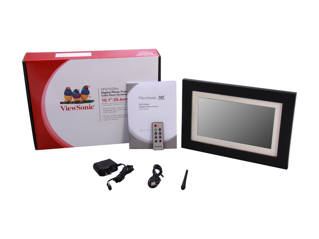 ViewSonic 10.1" digital photo frame, high 1024x600 resolution, 128MB, calendar/clock, auto on/off, LED backlight & remote control