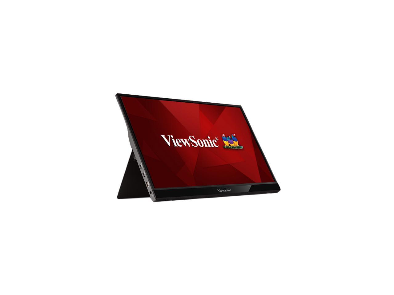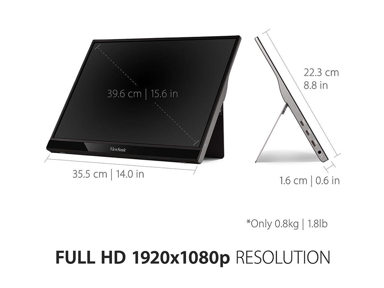 ViewSonic VG1655 15.6 Inch 1080p Portable Monitor with 2 Way Powered 60W USB C, IPS, Eye Care, Dual Speakers, Frameless Design, Built in Stand with Cover