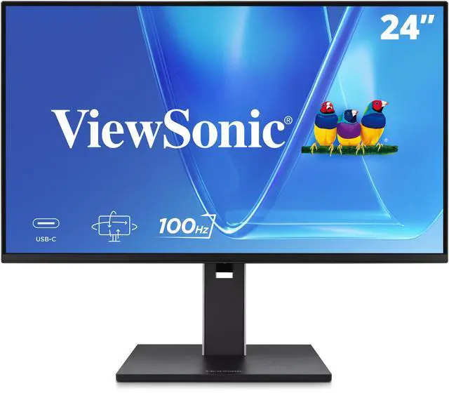 The VG2452 is a 24 FHD (1920 x 1080) USB-C monitor designed for business and home use. It features HDMI, DisplayPort, USB-C, and USB Type-A inputs, making connectivity simple. Simplify your work with just one cable that provides audiovisual, data and up to 65W power transfer. The monitor offers a 100Hz refresh rate, Eye ProTech+ technology, and various ViewMode presets for enhanced performance and comfortable viewing. Effortlessly personalize your workspace with a VESA-compatible mount, allowing easy adjustments for ergonomic multitasking. Reflecting ViewSonic's commitment to sustainability, this monitor is designed for energy efficiency and features a compact build with a laser-textured finish, made from sustainable materials.