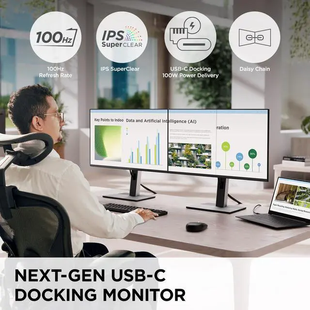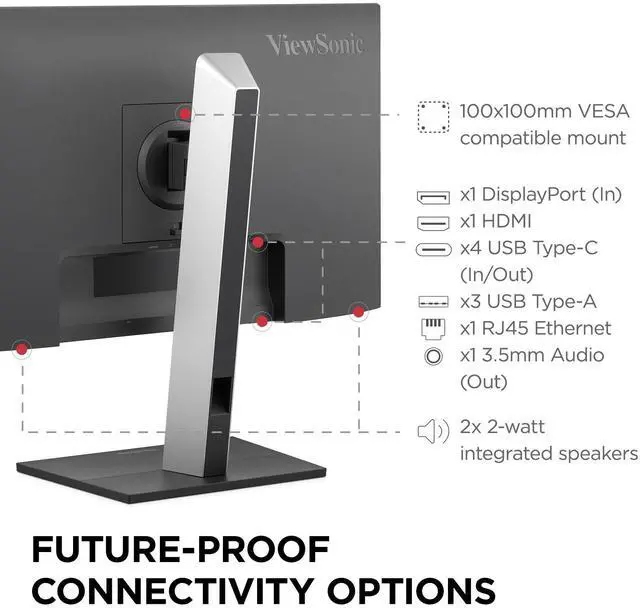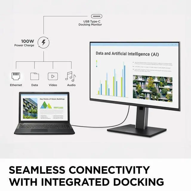 The ViewSonic VG2458 USB-C docking monitor streamlines your workspace by eliminating the need for a separate docking station or extra cables. This lets users enjoy a lower overall total cost of ownership (TCO) compared to more traditional setups. The VG2458s built-in docking station includes 100W USB-C connectivity, an RJ45 Ethernet port, USB-C daisy-chaining and a five-port USB hub.