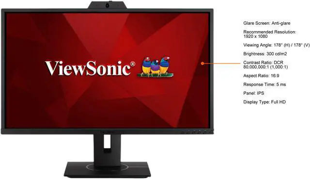 ViewSonic VG2740V 27 Inch 1080p IPS Video Conferencing Monitor with Integrated 2MP Camera, Microphone, Speakers, Eye Care, Ergonomic Design, HDMI DisplayPort VGA Inputs for Home and Office