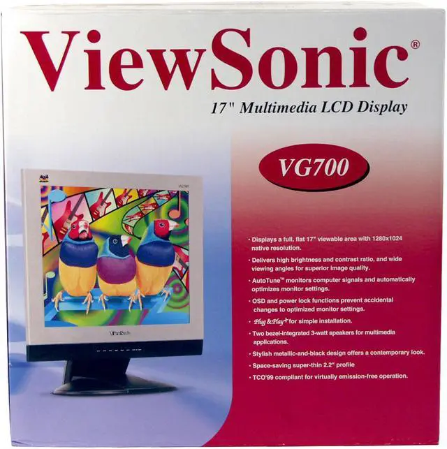 | User Controls | Auto image adjust, contrast, brightness, ViewMatch® color adjust (9300K, 6500K-default, user color), information (mode, model number, serial number), manual image adjust (H. size, H. position, V. position, fine tune, sharpness), setup menu (language, resolution notice, OSD position, OSD timeout), memory recall |