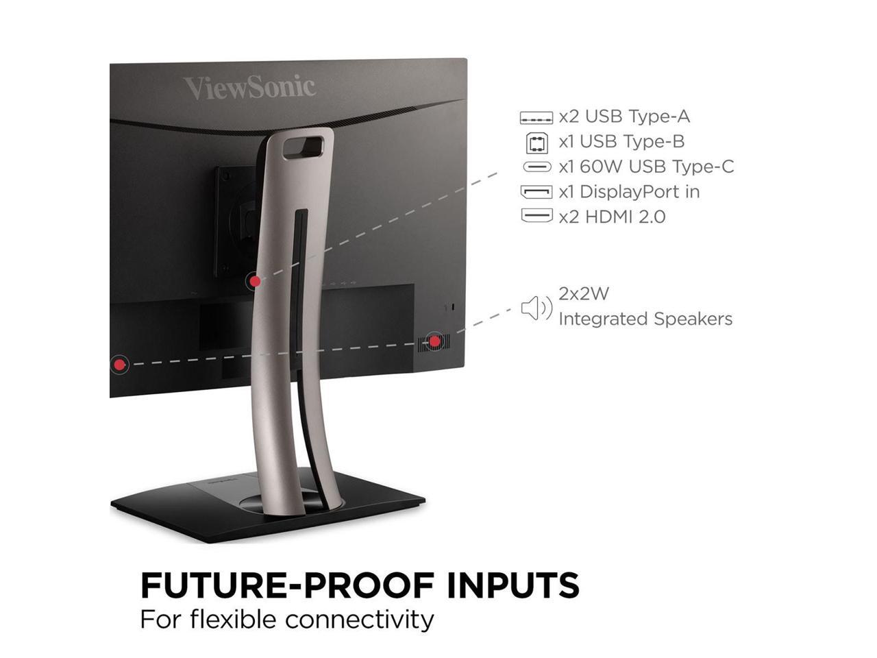 ViewSonic VP275-4K 27 Inch IPS 4K UHD Monitor Designed for Surface with advanced ergonomics, ColorPro 100% sRGB, 60W USB C, HDMI and DisplayPort inputs or Home and Office