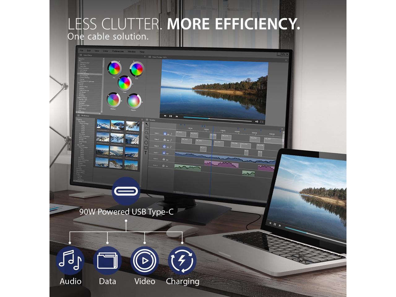 REDUCE CABLE CLUTTER: Connect video, audio, data and power with a single USB-C cable and plug in peripherals like USB drives and mice with the USB hub