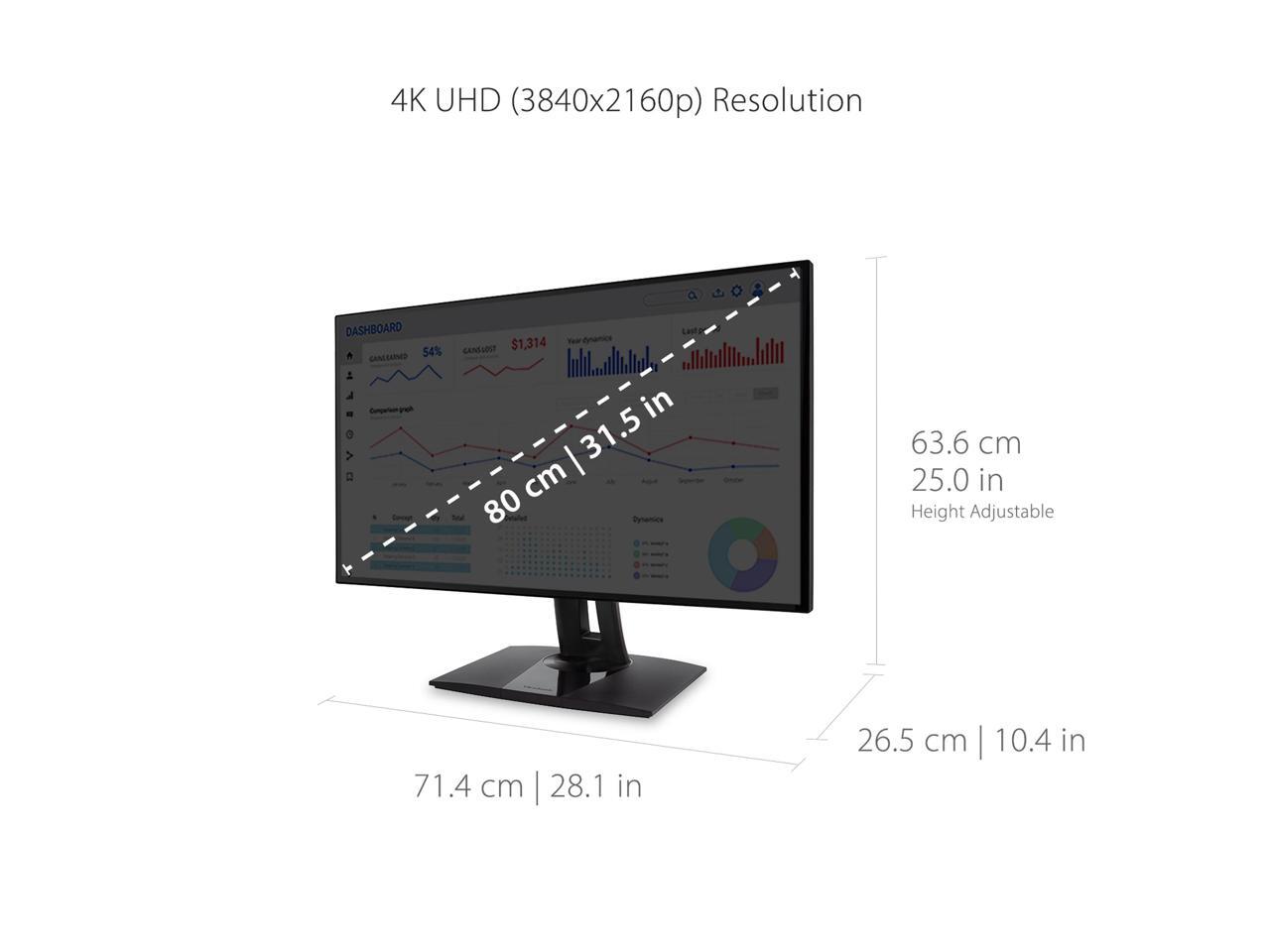 ViewSonic VP3268a-4K 32 Inch Premium IPS 4K Monitor with Advanced Ergonomics, ColorPro 100% sRGB Rec 709, 14-bit 3D LUT, Eye Care, HDR10 Support, HDMI, USB C, DisplayPort for Professional Home Office