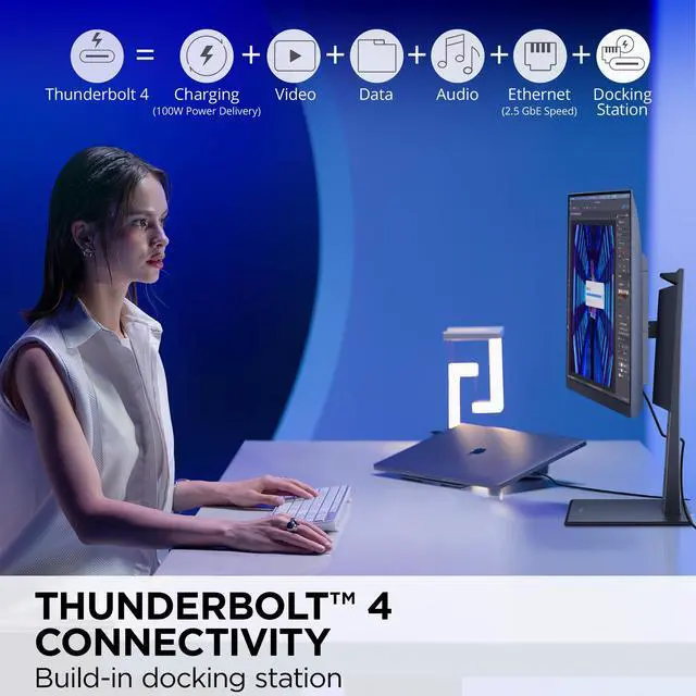 • THUNDERBOLT 4 CONNECTIVITY: Enjoy lightning-fast data transfer speeds of up to 40 Gbps for data, video, and audio transmission while delivering up to 100W of power