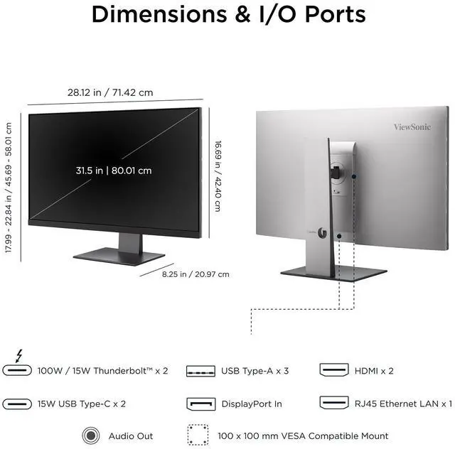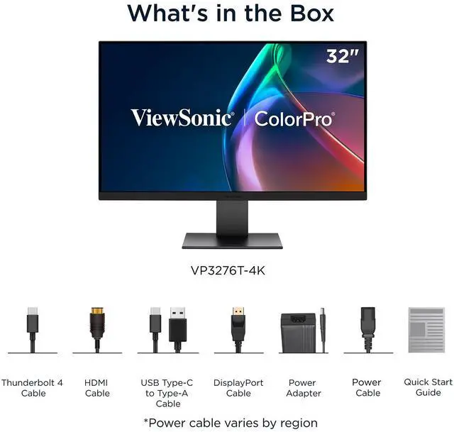 ViewSonic VP3276T-4K 32 Inch 4K UHD IPS Docking Monitor with Thunderbolt 4, Advanced Ergonomics, 100% sRGB Rec 709, Pantone Validated, USB C, HDMI, and DP Daisy Chain for Home and Office
