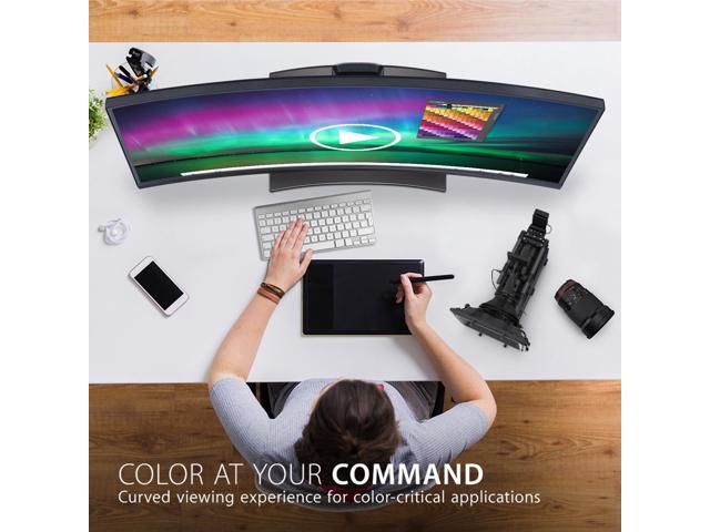 CURVED DESIGN: Immersive 2300R ultrawide curved viewing experience with panoramic images, vivid color, and incredible detail