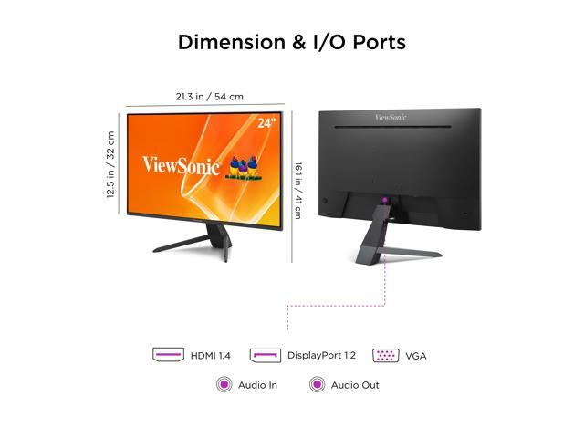 ViewSonic VX2470-MHD 24 Inch 1080p IPS Monitor with 120Hz, 1ms, Variable Refresh Rate, Eye Care, HDMI, VGA and DisplayPort Inputs