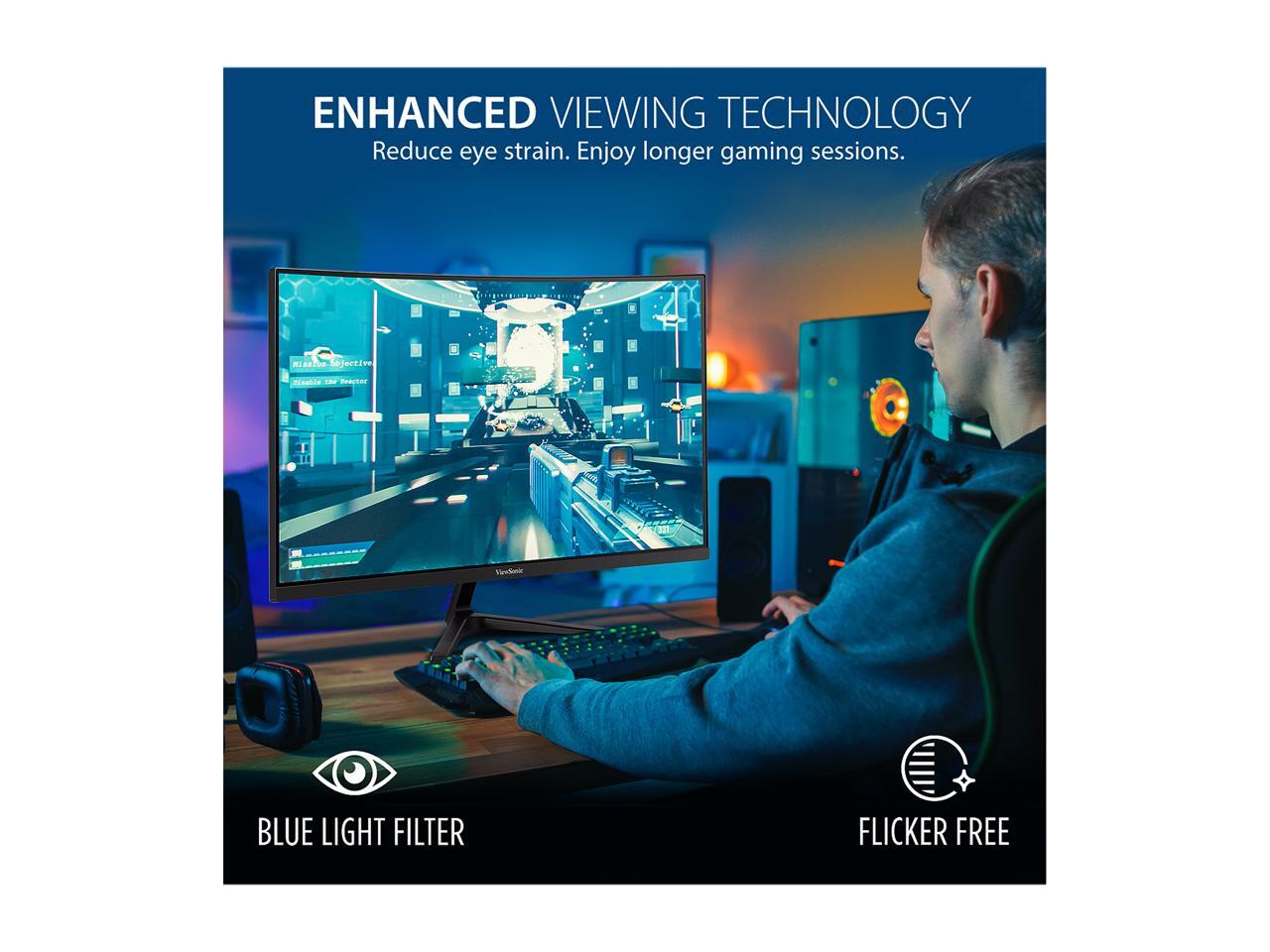 - ENHANCED VIEWING COMFORT: Flicker-free technology and a blue light filter minimize fatigue so you can play at your best all day long