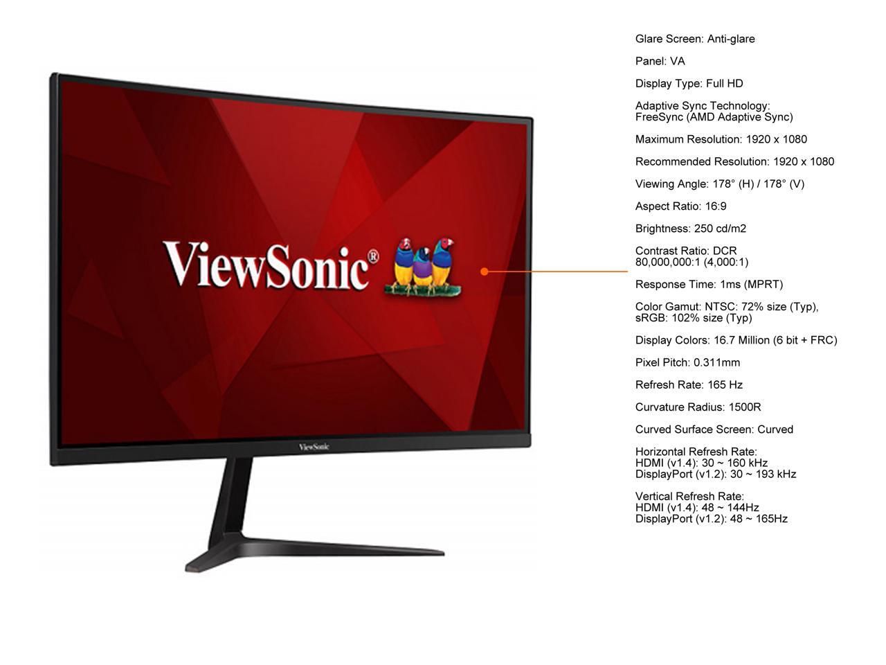 ViewSonic VX2718-PC-MHD 27 Inch Full HD 1080p 165Hz 1ms Curved Gaming Monitor with Adaptive-Sync Eye Care Frameless HDMI and Display Port