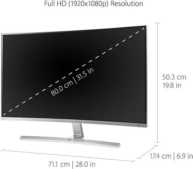 With a large 32” ( 31.5 ” viewable) curved screen design and stunning Full HD 1080p resolution, the ViewSonic® VX3216-SCMH-W monitor provides an incredibly immersive home entertainment experience. Designed with an 1800R curved screen featuring 88% NTSC wide gamut color coverage, as well as dual stereo speakers, this monitor delivers a perfect balance of comfort, color, and sound for complete viewer engagement. A sleek edge-to-edge frameless bezel and slick curves are great for multi-monitor setups, while a range of flexible connectivity options include HDMI, DVI, and VGA. The monitor also comes equipped with ViewSonic exclusive ViewMode™ presets, which offer optimized screen performance for home entertainment, work, surfing the web, and more.