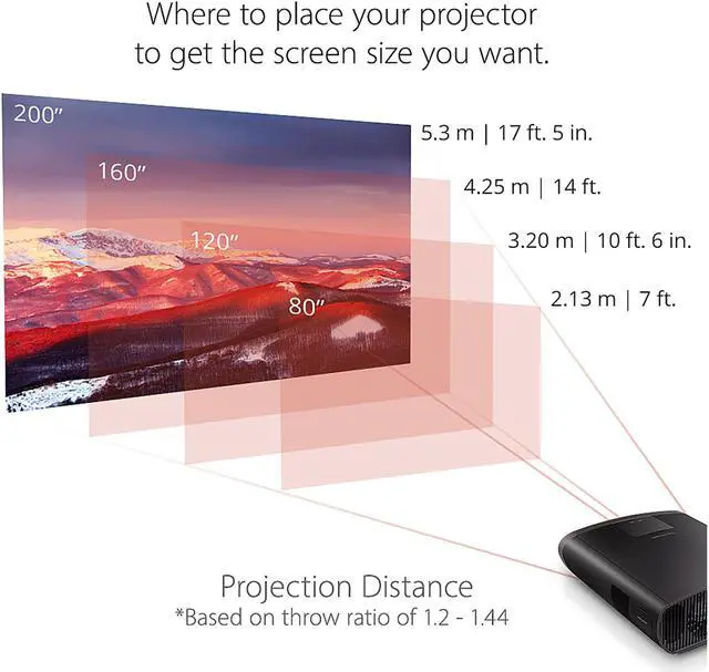 BIG SCREEN HOME THEATER: Immersive theater-like experience in 4K UHD (3840x2160), on a screen up to 300 inches in 2900 LED lumens