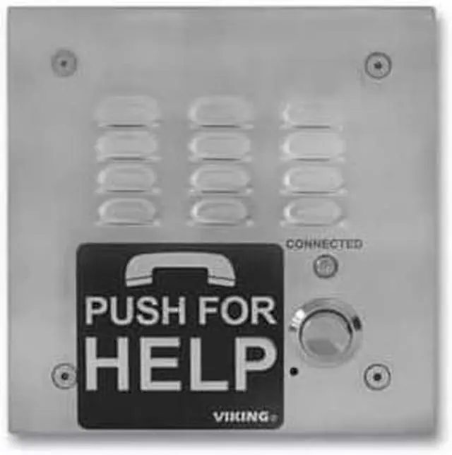 Viking Stainless Steel Emergency Phone ADA Compliant Grade 2 Braille Lable for visually impaired Flush Mount Handsfree Dialer Announcer Non volatile digital voice announcer with 16 seconds of voice memory Advanced call progress detection Phone line powered Non volatile E2 memory no batteries required Touch Tone or pulse dialing Dials up to 5 emergency numbers Cycles through backup emergency and non emergency numbers on busy or no answer Hangs up on CPC silence busy signal dial tone time out or Touch Tone mand Programmable to auto answer on ining calls Remotely programmable Extended temperature range 15 F to 130 F Central Station Monitoring capability dials 2 numbers Separate central station voice speed dial number Optional PB 100 Polling System availableVKE160030A ~~