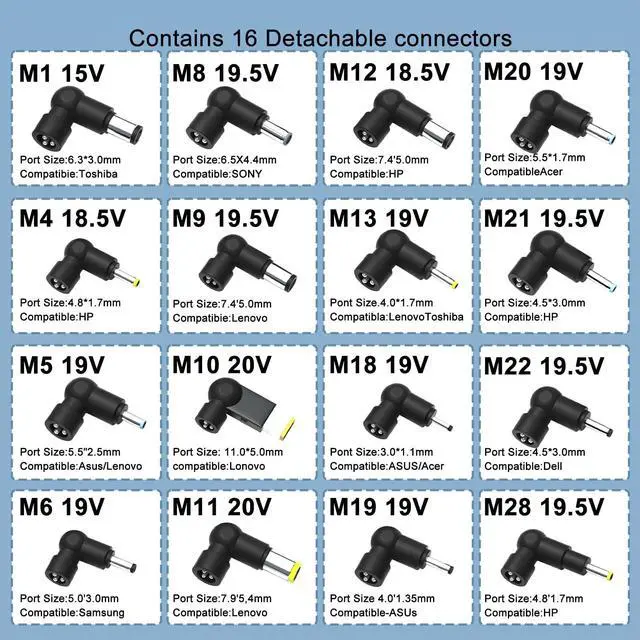 Mutiple DC 16 Tips - Works for Lots of Brand Model Laptops