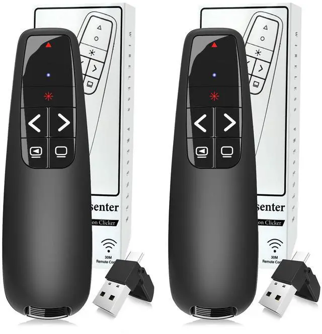 (2 Units) Wireless Presentation Clicker PowerPoint Presenter Remote: Clicker with Red Laser Pointer Long Range PPT Control -Power Point Google Slide Advancer for Mac Laptop PC Computer Keynote