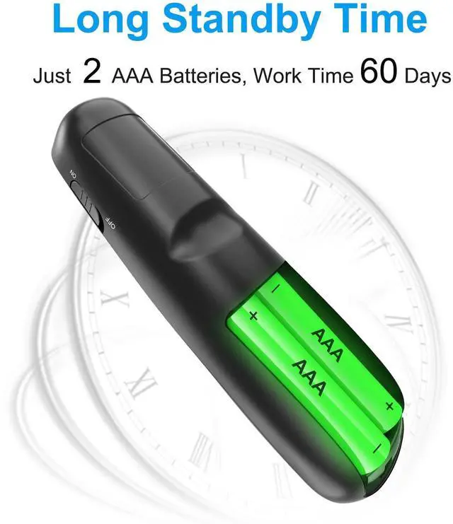 3.Remote powerpoint clicker with laser pointer has a big clear laser beam and does not need to be pointed at the computer when in use. Light Range: 328FT/100M.