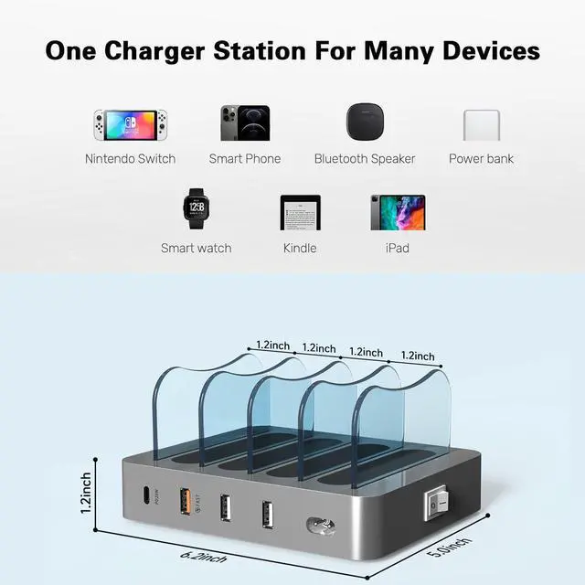 | Compatible Phone Models | charging station compatible with iPhone 16/16 pro/16 pro max/15/15 pro/15 pro max/14/14 pro/14 pro max/13/13 pro/13 por max/12/12 pro /11 /11 pro /iPhone XS / XS Max / XR / X / 8 Plus / 8 / 7 Plus / 7 / 6s Plus / 6s / 6 Plus / 6 / 5s / 5c / 5 / iPad Pro / iPad Air / Air 2 / iPad mini / mini 2 / mini 4; iPad 4 / 3 / 2, Amazon Kindle, Samsung Galaxy S22/S21/S20, Note 2 / 3 / 4, and tablets, HTC; Samsung Galaxy S7/S7 Edge/S7 Edge+, Samsung Galaxy S8/S8+, Samsung Galaxy Note Edge/Note 8, Samsung Galaxy J7/J7 Prime, Samsung Galaxy J3/J3 Prime/C9 Pro, Samsung Galaxy C5, Samsung Galaxy A9, Samsung Galaxy S6/S6 Edge/S6 Edge+; Samsung Galaxy S4, Samsung Galaxy Tab, Nexus 5/5X/6P/7, LG G3 G4 G5 G6 V30 V20 Optimus, Ludic, Echo Dot, SONY Z5, SONY X Performance, NOKIA, SONY, and other devices |