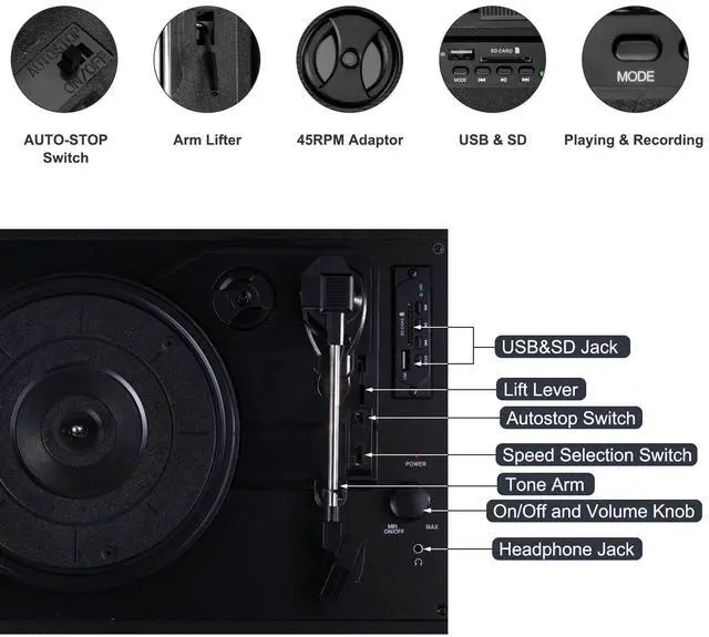 Playing classic Vinyl with the retro record player,taking you back to the slow time and let marvelous music streaming in your Leisure life.