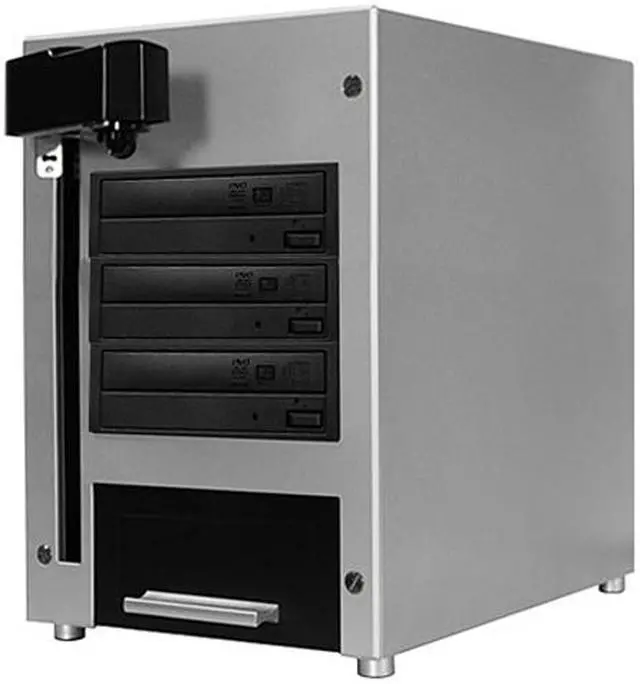 The Cube fits in any office or cubicle and works unattended to make 60 copies per run. Plus at an incredibly low price point, The Cube fits nearly any budget. With 60 discs capacity and 3 recording drives, The Cube gives you the ability to work on other matters with the confidence that your project will be duplicated quickly and reliably without breaking the bank.