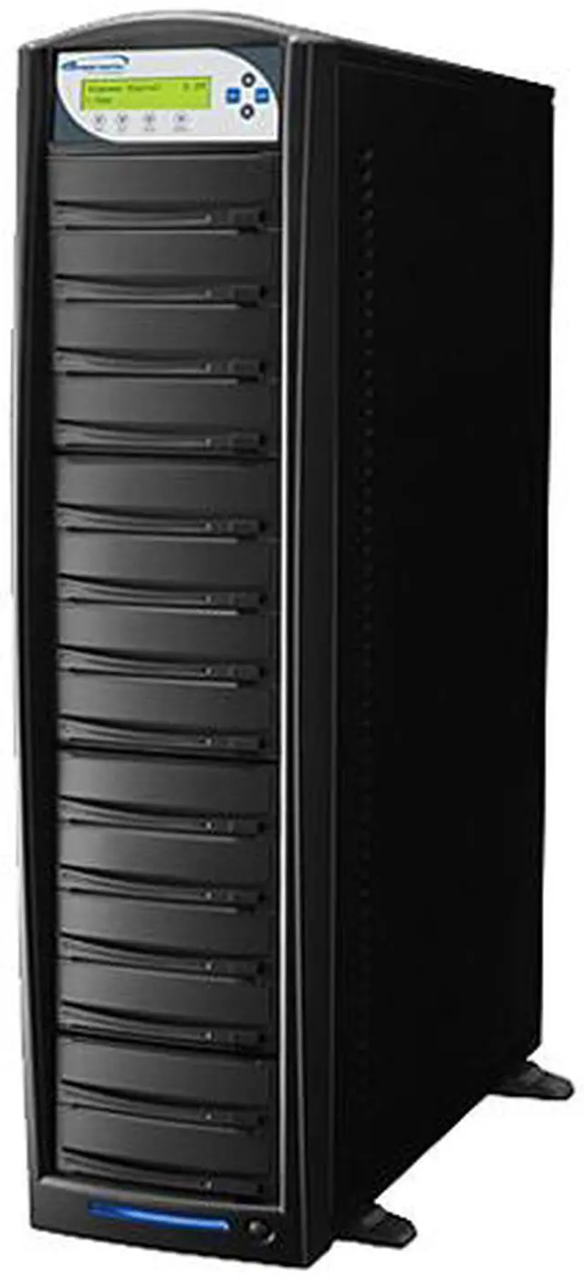 | Key Features | Complete Standalone Operation: No PC required to operate the duplicator. Auto DVD Format Conversion: Can convert media between DVD+R/RW and DVD-R/RW automatically. Load and Copy Supported *: Improved "Load and Copy" to make duplication from Hard Drive faster than ever by simultaneously copy into the blank media while Loading to the hard drive. Continuous Hard Drive Partitioning *: The HDD partitions are created without limitations using the same amount of space as the actual content size on the disc. No longer do you have to worry about loosing valuable HDD capacity because your duplicator allocates the exact space required without wasting space like standard partitions on other controllers. Industry leading 256MB buffer memory **: Keeps all drives burning without pausing (known as buffer underrun) for the most stable and reliable high speed duplication - The higher the memory buffer the less likely to encounter buffer underrun errors. Supports all common CD Formats with Additional Special format including CD-TEXT, ISRC, Over-Burned CD. Drive firmware upgradeability: Capable of upgrading the drives for selected brands through the Duplicator. Multi-Language capability: The text on the LCD screen can be displayed in English, Spanish, French, Japanese & more. Chinese can be added upon request. *Requires installation of a Hard Drive. **Available only on specific models. |