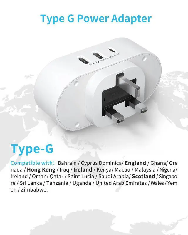 This type g travel adapter fits perfectly into the socket, to provide extra stability when using large and heavy plugs. You can plug in all the outlets without worrying about it falling out of the wall socket.