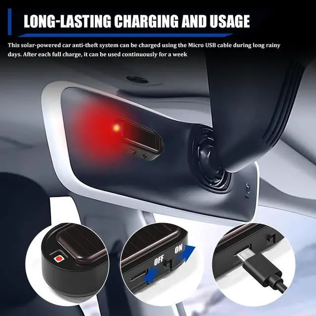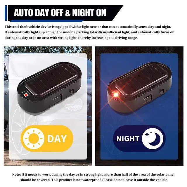 -The fake car alarm light has its own sensor light to sense the light, and the USB port can be used as a backup power source.