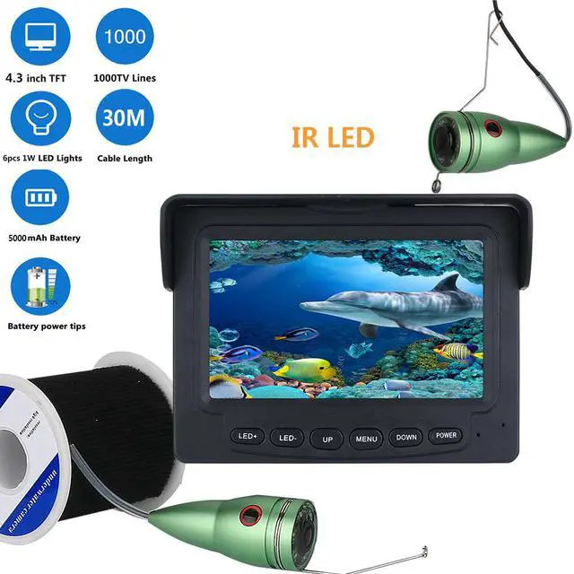30M 1000TVL Fish Finder Underwater Fishing Camera 4.3" LCD Monitor 6PCS 1W IR LED Night Vision Camera For Fishing