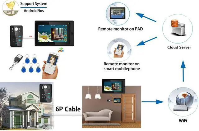 Products Introduction: Easy installation by yourself with the adapter and cable we provided in this kit, outdoor unit can connect to indoor monitor by wired 6P cable. When indoor monitor connected to your wireless wifi router, you can connect mobile phone to indoor monitor, then mobile phone also can record video or open the door etc. Widely used in villas, apartments, houses, hotels, offices, public buildings and so on. 1. Indoor monitor use the multi-point capacitance touch screen, adopt to Android System, steady and easy to operate. 2.7 inch High definition digital LCD monitor, with take picture, visitor records and calendar function. 3. Indoor monitor can take picture by manually or automatically, max to support 64G TF card. 4. Indoor monitor with monitor, intercom, unlock, hands-free and Don't disturb function.