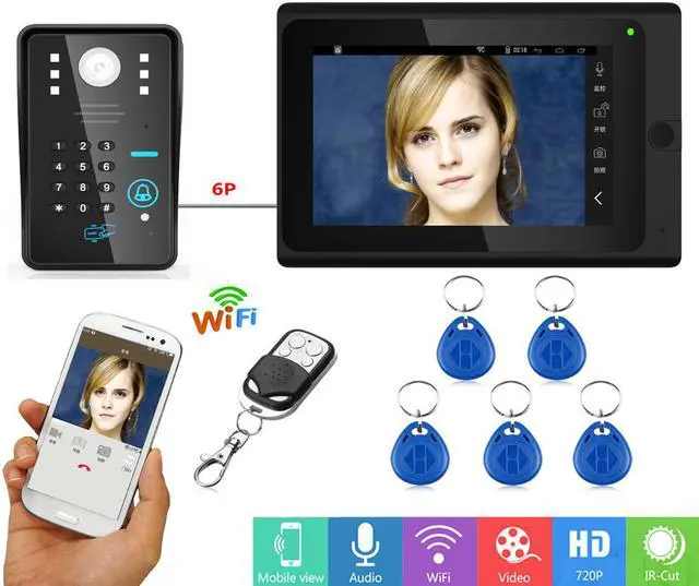 7inch Wired / Wireless Wifi RFID Password Video Door Phone Doorbell Intercom Entry System with 1000TVL Wired Camera Night Vision, Support Remote APP unlocking, Recording, Snapshot