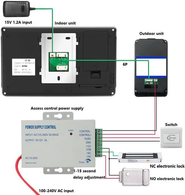 Accessory: 1*Indoor Monitor 1*Outdoor Unit 1*15V/ 1.2A Power Supply 1*6-core terminal wire (15m) 1*unlock terminal wire 1*Manual 1*Mounting plate 1*Screws 1*Color package