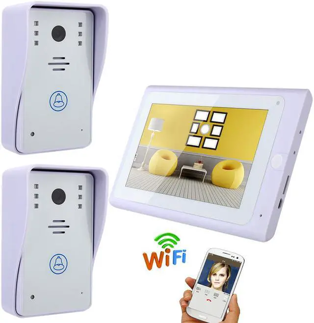 7 TFT Wired / Wireless Wifi IP Video Door Phone Doorbell Intercom System with 2 X 1000TVL Wired Camera Night Vision,Support Remote APP unlocking,Recording,Snapshot