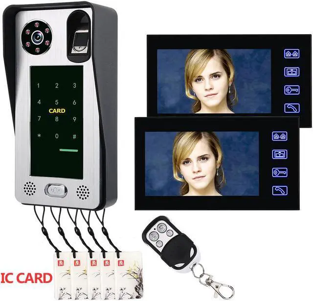 2 Monitors 7inch Fingerprint IC Card Video Door Phone Intercom Doorbell With Door Access Control System Night Vision Security CCTV Camera Home Surveillance