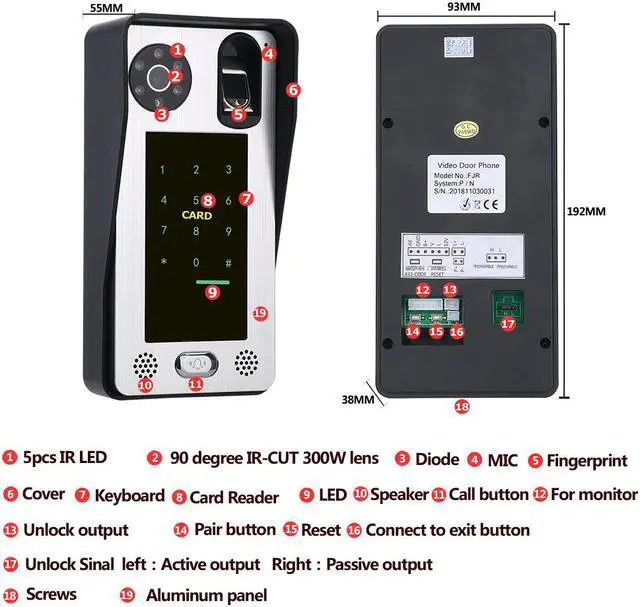 6.Outdoor Unit uses semiconductor fingerprint sensor,max supports 500 fingerprints.