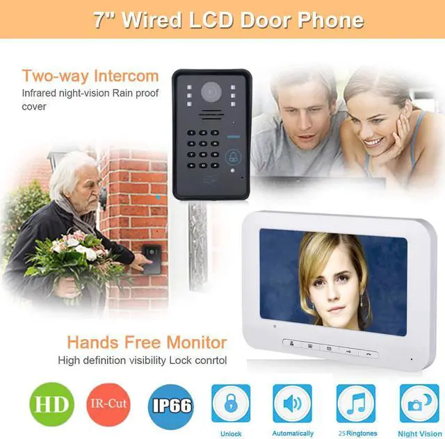2.Durable Outdoor Camera:Little rain and oxidation-proof for the durable ABS outdoor unit,is well protected by weatherproof cover,camera with IR-CUT,the image is colorful and clear.Support 2000 ID cards unlock,2000 passwords unlock.
